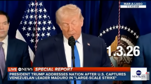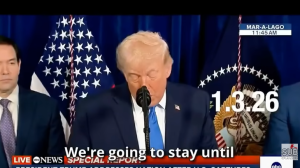 Clip 1 Trump vor zwei Tagen (3.1.2026) für Regime-Change [Wechsel] |: Quelle: Screenshot Judging Freedom YouTube