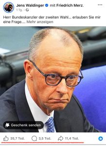 Im Social Web gehen die Gemüter hoch, heftige Reaktionen kommentieren einen Leserbrief an Friedrich Merz, der alleine in facebook über 43.000 Mal gelikt und 4.300 Mal kommentiert wurde. Der Beitrag spricht vielen Lesern aus dem Herzen.