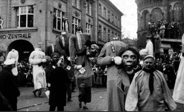 Das ist ein weiterer Baustein, mit dem die durch die Propaganda geschaffene Echokammer geschlossen wird. Die Illusion des gesunden Volksempfindens. Das sich nirgends besser inszenieren lässt als durch diesen Karneval, was, wie oben erwähnt, auch die Nazis schon begriffen hatten. Die Darstellungen im Karneval waren eben glaubwürdiger als jene der offiziellen Propaganda. Aber am Ende steht dasselbe Grauen.