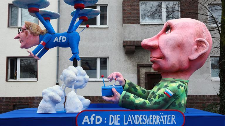 Immer schön auf Linie bleiben, das ist schon seit ewigen Zeiten das Motto der großen Karnevalsvereine, egal, ob in Düsseldorf, Köln oder Mainz. Da sind die Motivwagen, die in den vergangenen Jahren den russischen Präsidenten Wladimir Putin ebenso attackierten wie den US-Präsidenten Donald Trump, keine Ausnahme. Im Gegenteil.