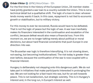 - Posting 1 von Viktor Orbán zum EU-Kriegskredit an Ukraine am 20.12.2025 auf X: