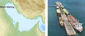 Dazu kommt vorgelagert der iranischen Küste die 23 km2 große Insel Khark, über die im Jahr 2012 die Verladung von noch 98% der iranischen Rohölexporte zentral erfolgte: