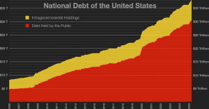 Die Kurve der US-Staatsverschuldung weist stets nur nach oben | Quelle: Wikideas1, CC0, via Wikimedia Commons